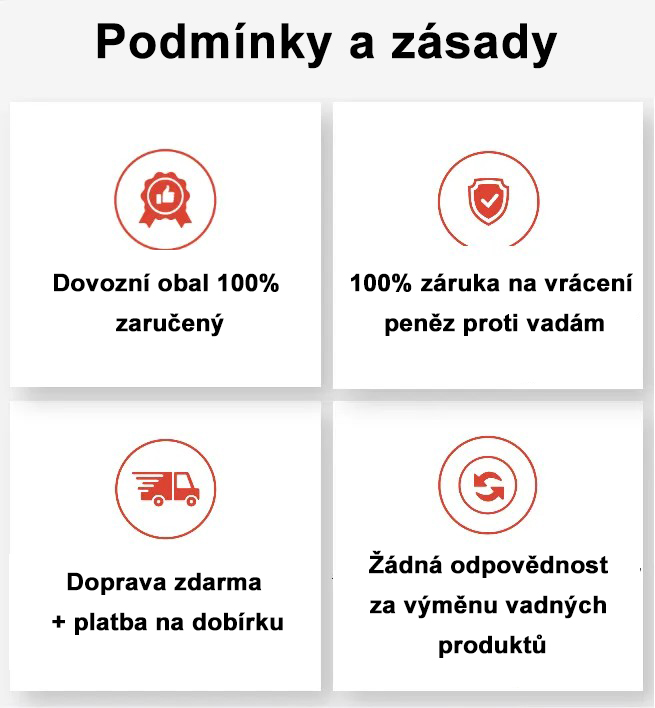 Všechny produkty mají 365denní záruku kvality, doba dodání je 5–7 dní.